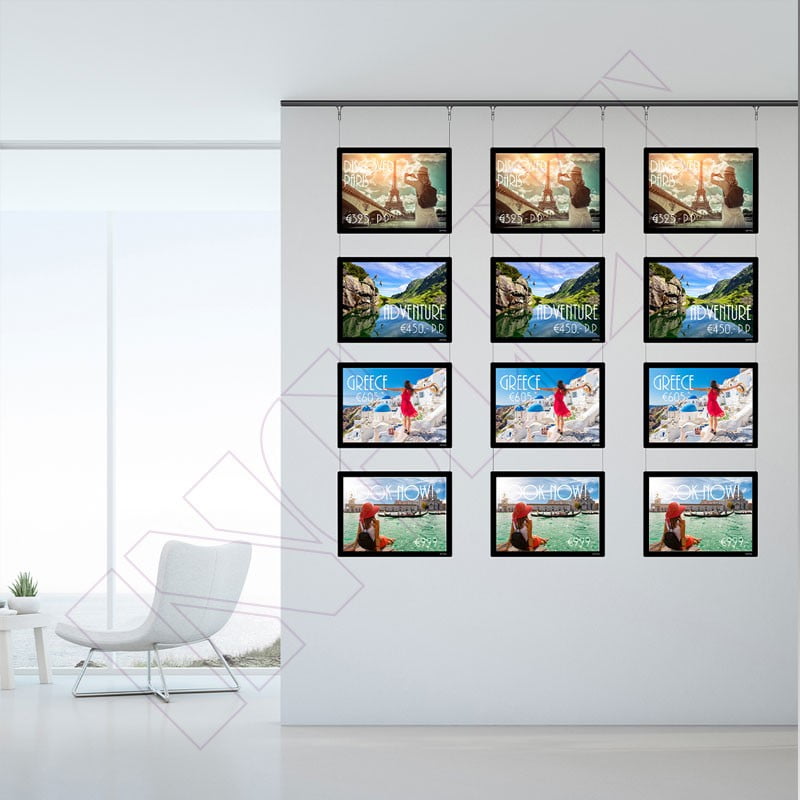 Display It LED es un sistema de pantallas equipadas con una retro-iluminación LED clara y de bajo consumo. Tanto de día como de noche, la iluminación LED llama la atención sobre las imágenes, productos y servicios. Por lo tanto, este sistema es perfecto para atraer a los clientes, con colores vibrantes y marketing llamativo. Es perfecto en expositores, escaparates, salas de exposición, oficinas o lugares de trabajo concurridos.