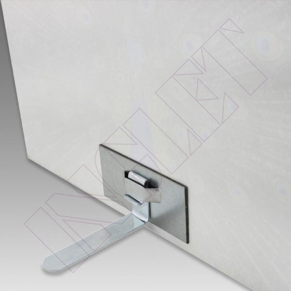 Dissenyat per a subjectar petits panells d’alumini, acrílic, vidre o similars. El peu de 75 mm de llarg simplement s’encaixa a la platina adhesiva de 80 x 40 mm. Inclou peu i platina.