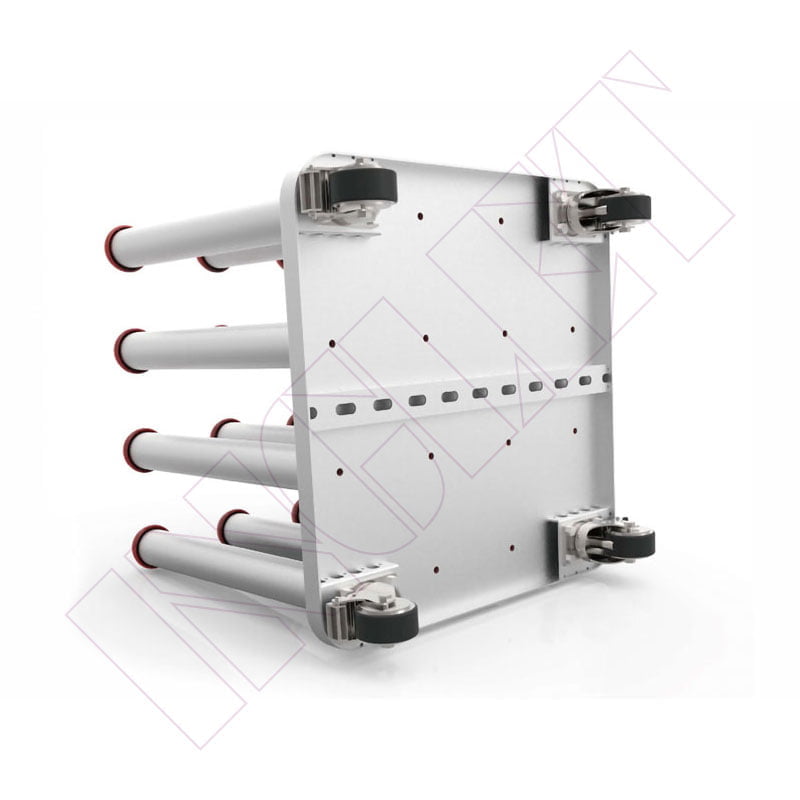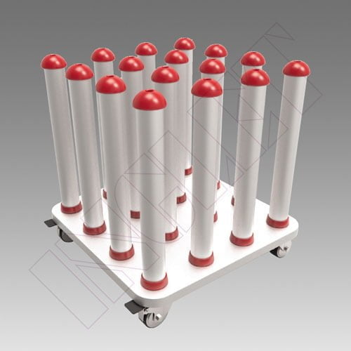 Portabobines vertical per a rotllos de 76 mm. Estructura totalment d’alumini. Pràctic i lleuger. Equipat amb rodes per a facilitar el moviment i amb frens. Compta amb 16 suports verticals per a rotllos de qualsevol altura. És extremadament sòlid, còmode i molt útil per a mantenir l’àrea de treball ordenada.