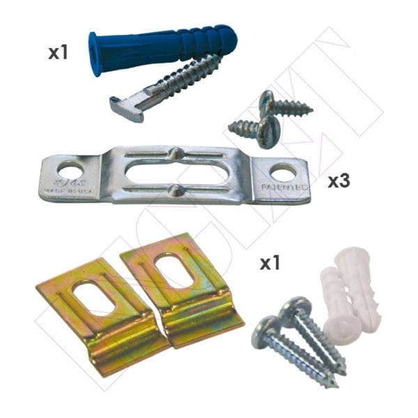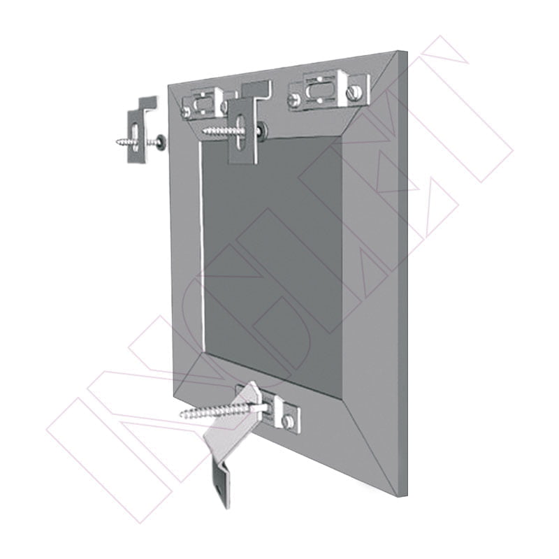 Sistema de seguretat per a penjar i fixar marcs de fusta. Els marcs no es poden llevar fàcilment de les parets sense l’ús d’una clau especial.