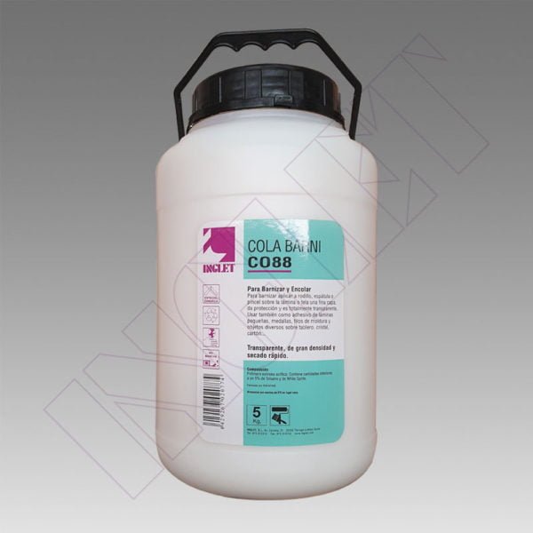 Producto de alta calidad, gran densidad y secado rápido. Amplias posibilidades para el enmarcador debido a su doble uso: como cola o como barniz. Es perfecta para el encolado de láminas pequeñas sobre tablero, cristal, cartón, madera… así como para pegar filos de moldura sobre cristal. Aplicándola sobre la lámina o tela mediante espátula, pincel o rodillo produce un efecto de barniz relieve totalmente transparente al secar.