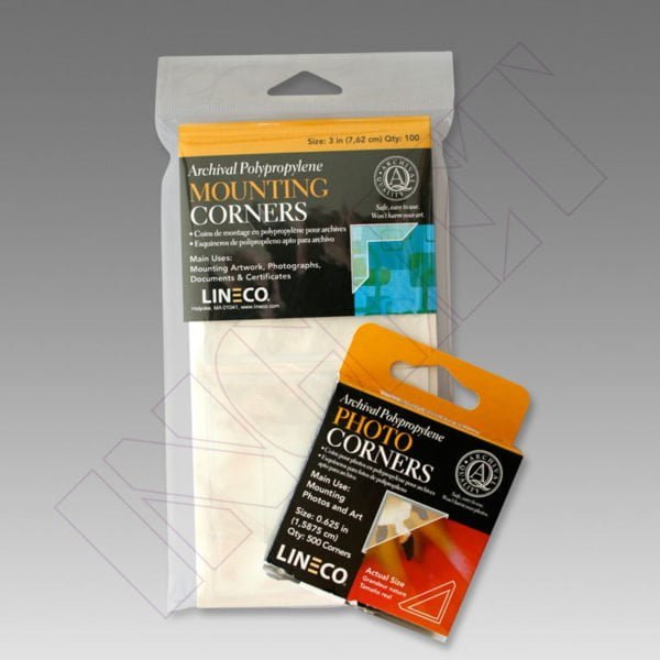 Os protectores de canto adesivos de polipropileno de grau de arquivo são sensíveis à pressão e praticamente desaparecem na página, mantendo firmemente no lugar fotografias e documentos. Seguro e fácil de usar. Não danificará as fotos. Sem ácido e não contêm nenhum dos plastificantes nocivos que afectam a maioria dos protectores de canto de plástico. Adesivo acrílico não amarelado. Para montagem de elementos de peso leve-médio.