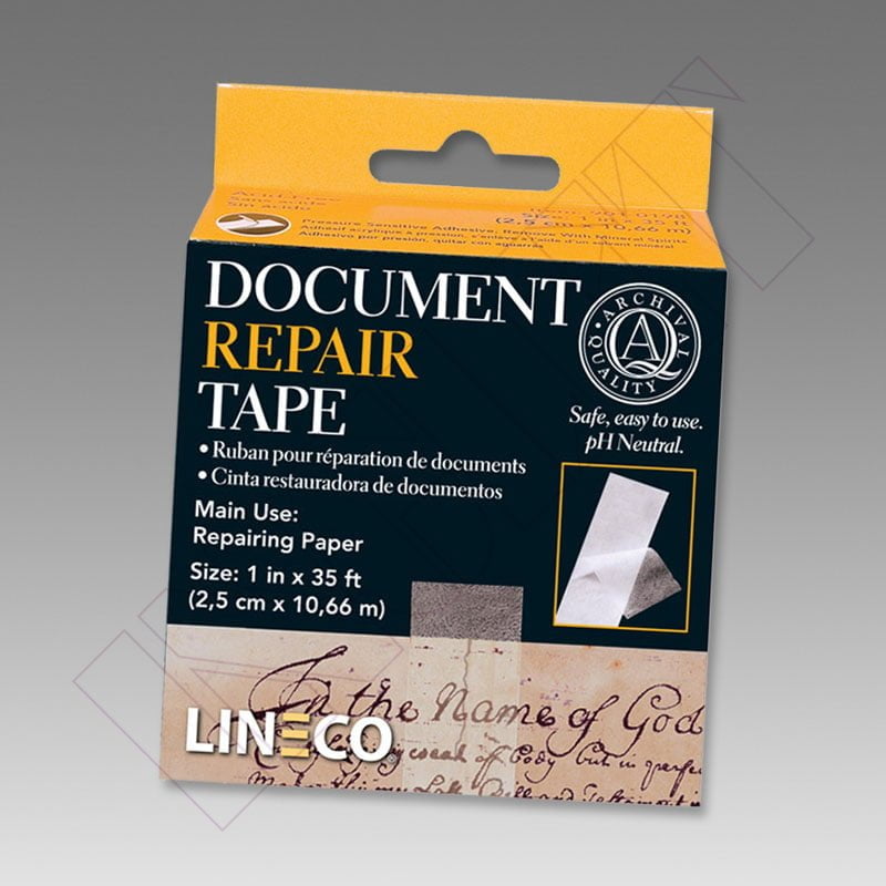 Fita de papel extremamente fina e transparente para restaurar rasgos e outros danos à papelada, documentos, mapas e objectos. Sem ácido e sem lignina. Fina, mas forte. Desaparece completamente uma vez aplicada. Adesivo acrílico, permanente e não amarelado.