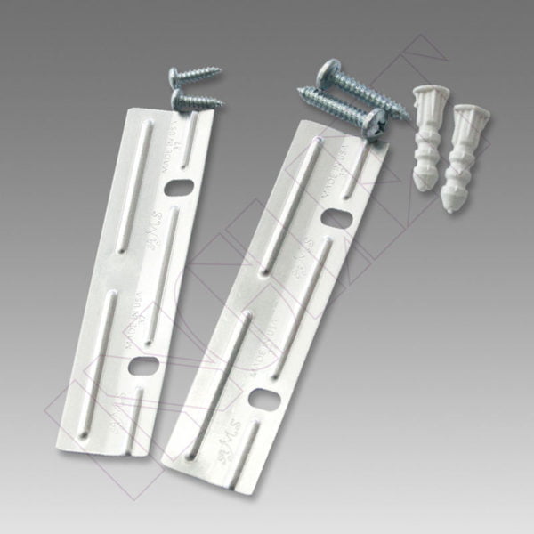 2 placas metálicas: Uma para aparafusar na parede e outra para aparafusar na quadro.