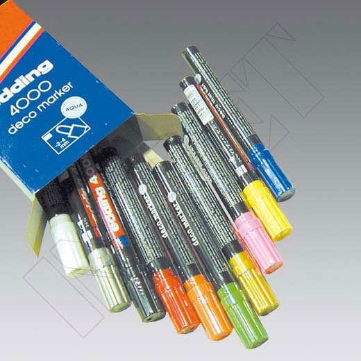 Canetas de retoque à base de água com ponta de 2 a 4 mm, para coloração em qualquer tipo de superfície.